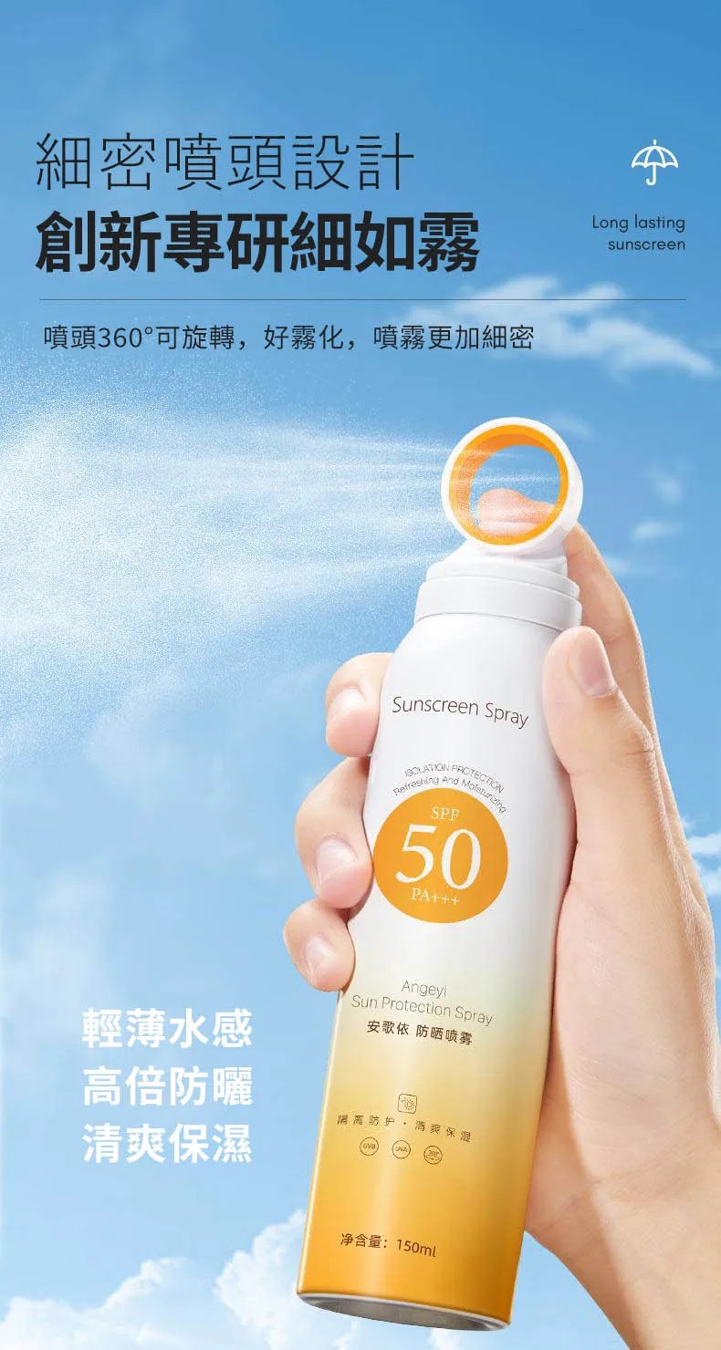 5分鐘前安歌依光圈防曬噴霧,細密噴頭設計 噴頭360°可旋轉自然膚惑,隔離防曬一瓶搞定 - 特大優惠「安歌依光圈防曬噴霧」4入96%用戶的選擇!NT$1198【限時免運】