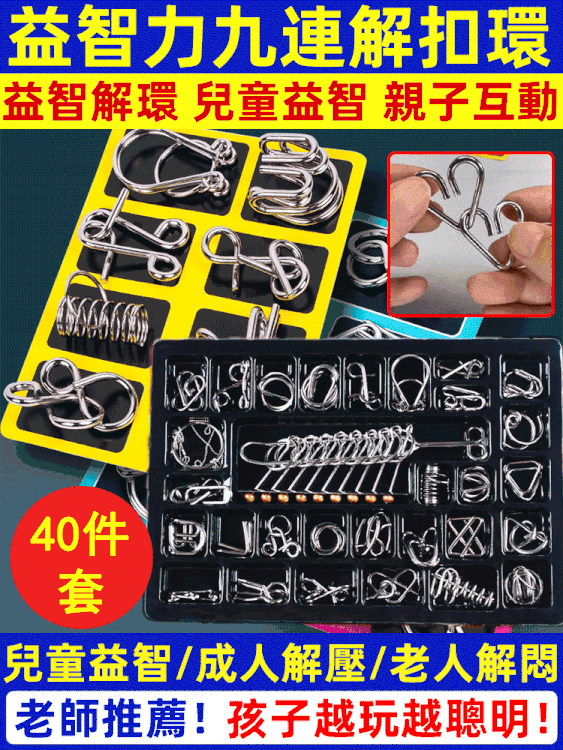 5分鐘前玩過這個孔明連環扣的孩子都比其他孩子聰明!鍛煉孩子空間想象力和邏輯思維能力! - 孔明連環扣益智40入套裝2入組 NT$1350