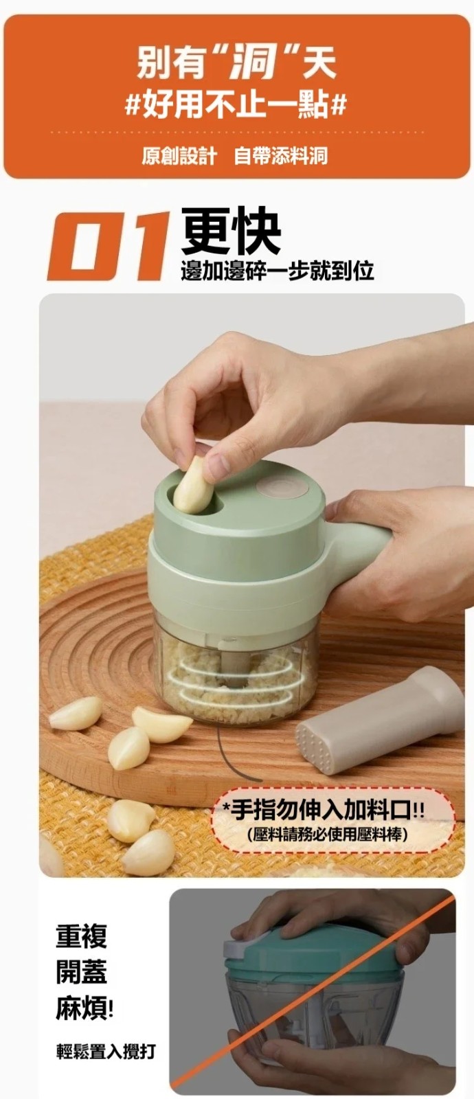 25分鐘前【多功能加特林切菜器】 搗蒜神器節省時間 家用無線電動 操作簡便多功能三合一手持迷你料理機 避免浪費清洗方便外觀精美 - 「解放您的雙手 輕鬆解決切菜煩惱」優惠套餐 2入組-NT$1398