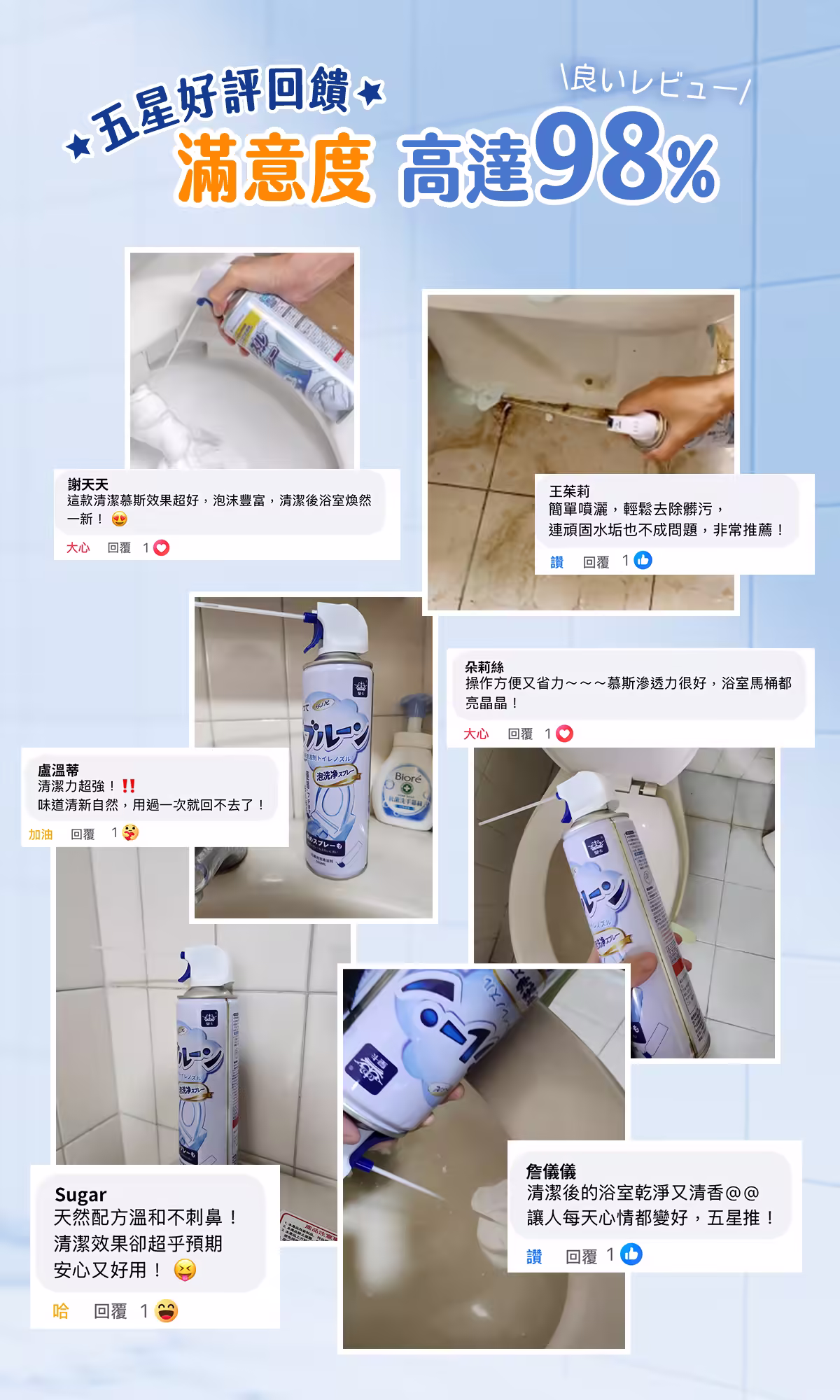 15分鐘前雪泡淨浴廁清潔慕斯 ,馬桶不刷也能亮 , 浴室清潔一瓶搞定 - 【買三送二】【MokoClean雪泡淨】5入組,細緻泡沫滲透每個角落 免運 NT$990