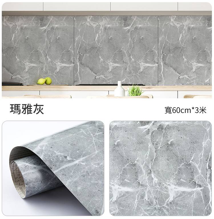 7分鐘前限時搶購 廚房貼紙防水防油大理石家具貼膜自粘牆紙瓷磚灶台桌面櫃子保護膜 - 4卷,僅需NT$999