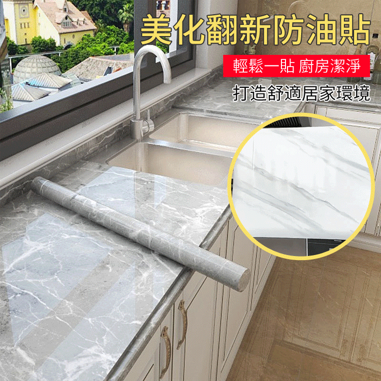 4分鐘前限時搶購 廚房貼紙防水防油大理石家具貼膜自粘牆紙瓷磚灶台桌面櫃子保護膜 - 8卷【1卷僅需149】NT$1199